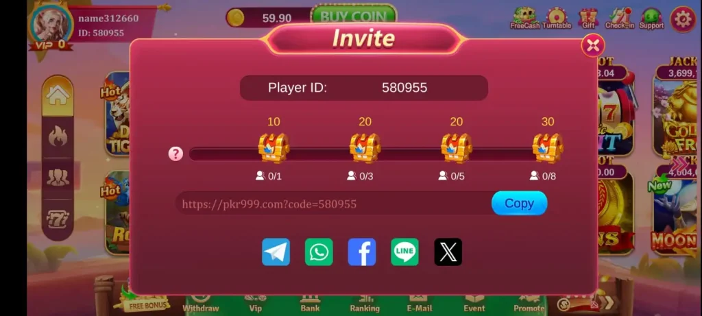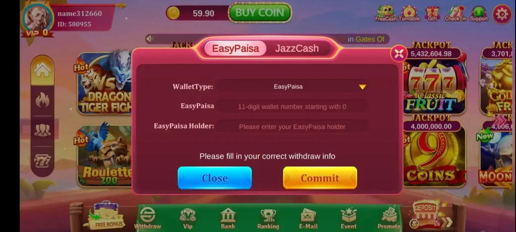 The platform offers over 60 games, including traditional favorites like Ludo, Carrom, and Teen Patti, as well as modern casino games like Roulette, Dragon vs Tiger, and Slot Machines. This variety ensures there’s something for everyone, catering to different tastes and preferences Download aslo M777.PK AND 345E GAME and 999R Game.